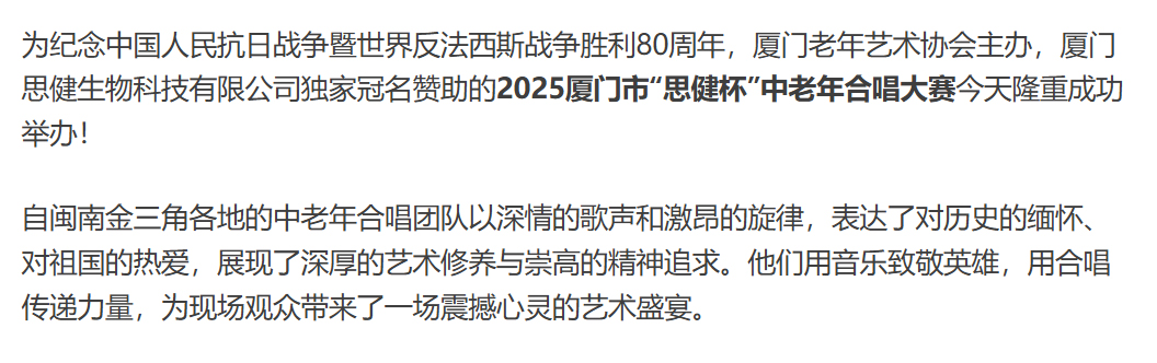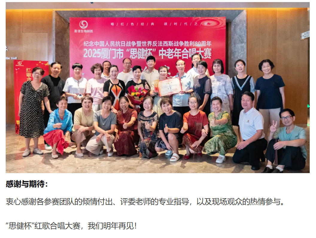 熱烈祝賀2025廈門(mén)市“思健杯”紅歌合唱大賽圓滿成功