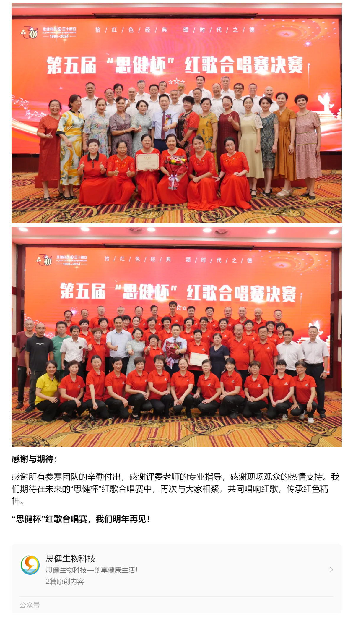 熱烈祝賀第五屆“思健杯”紅歌合唱賽圓滿成功