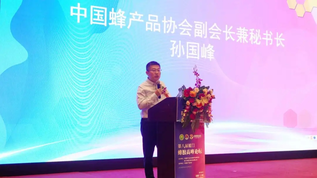 中國(guó)蜂產(chǎn)品協(xié)會(huì)副會(huì)長(zhǎng)兼秘書(shū)長(zhǎng)孫國(guó)峰在論壇發(fā)言
